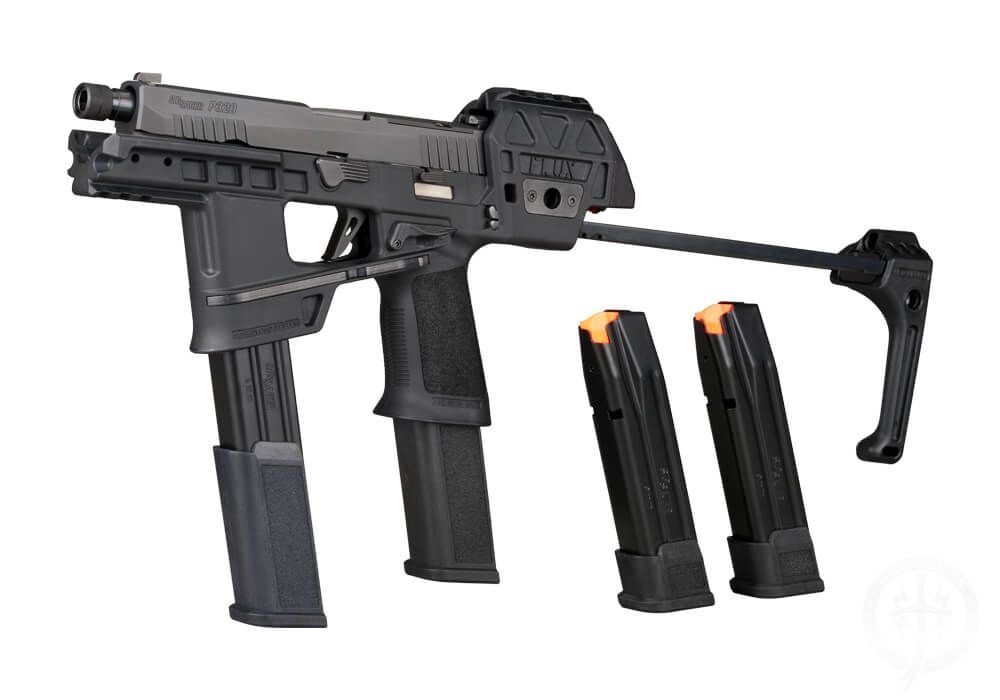 The P320-FLUX LEGION meshes a 9mm handgun with a PCC style platform, bringing the speed, maneuverability, and concealability of a pistol, combined with the stability of a carbine.