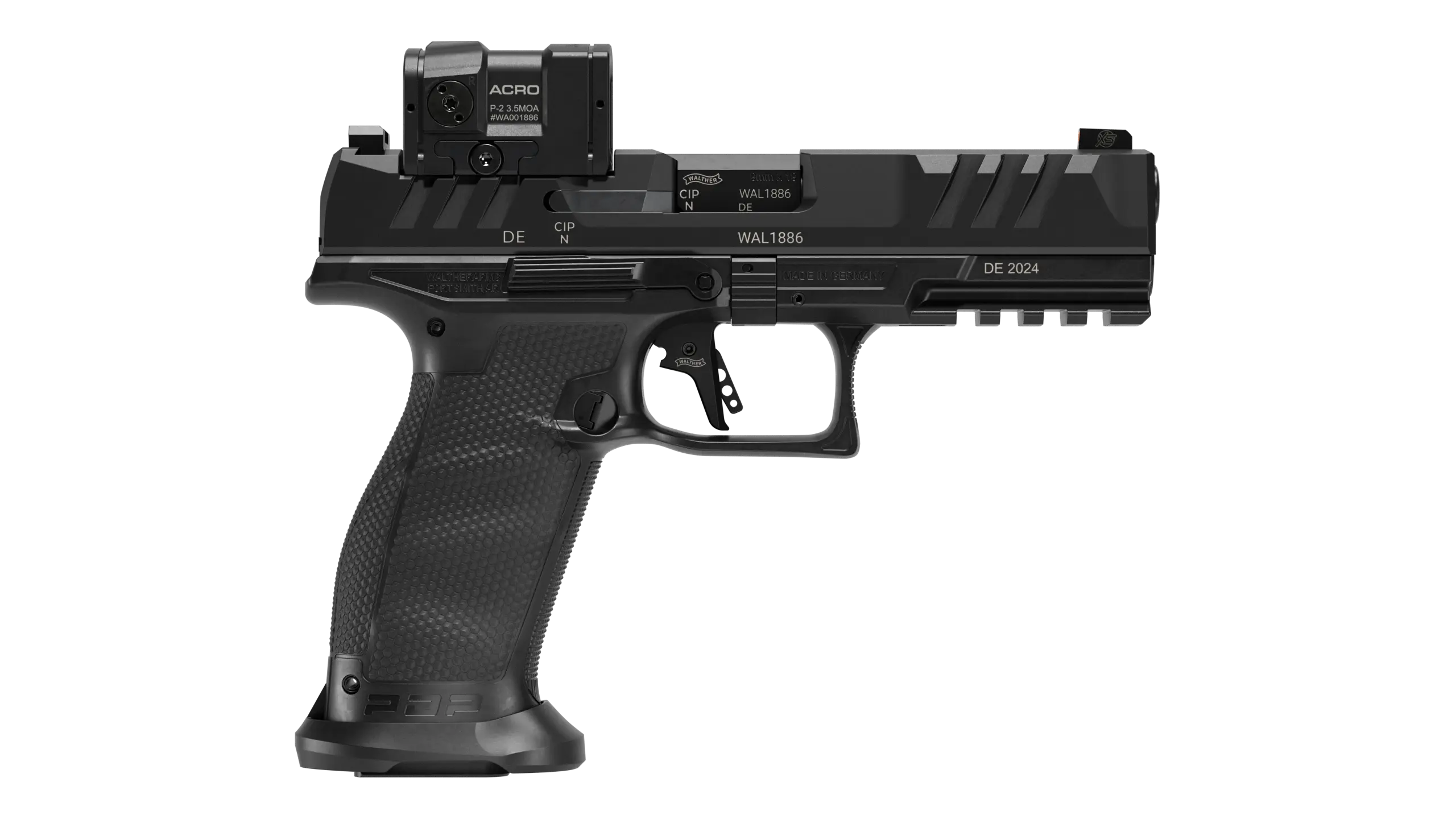 The Walther PDP FS Professional ACRO is a purpose-built handgun designed for law enforcement professionals. This 9mm pistol features a direct-milled slide that’s compatible with the included Aimpoint ACRO red dot sight and other optics with a similar footprint, ensuring rapid target acquisition and precision in demanding conditions. The full size ACRO also features Tritium night sights to enhance visibility in low-light environments, providing essential support in critical situations. Additionally, it has an aluminum magwell designed to help with speedy reloads and a Dynamic Performance Trigger to ensure consist and accurate shots.